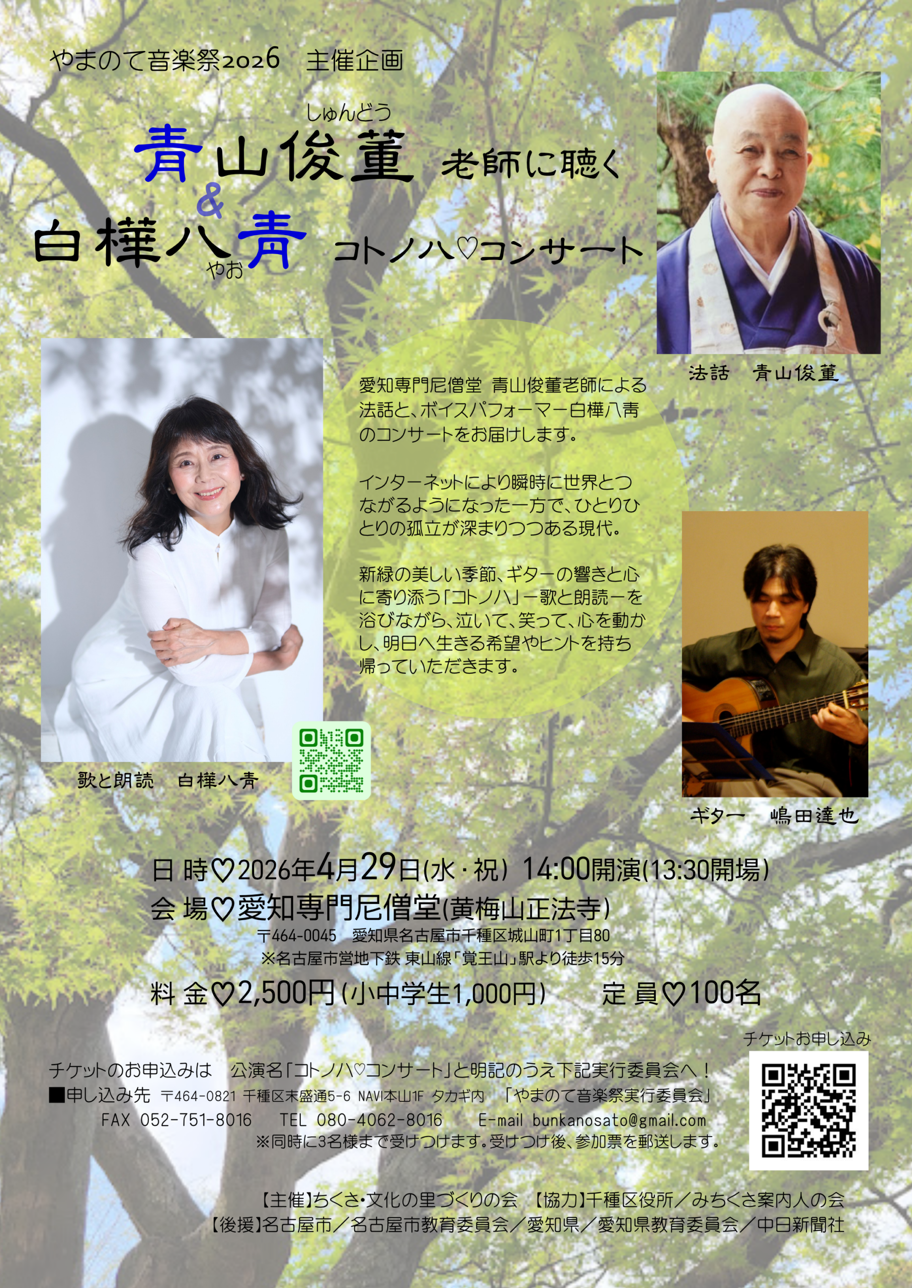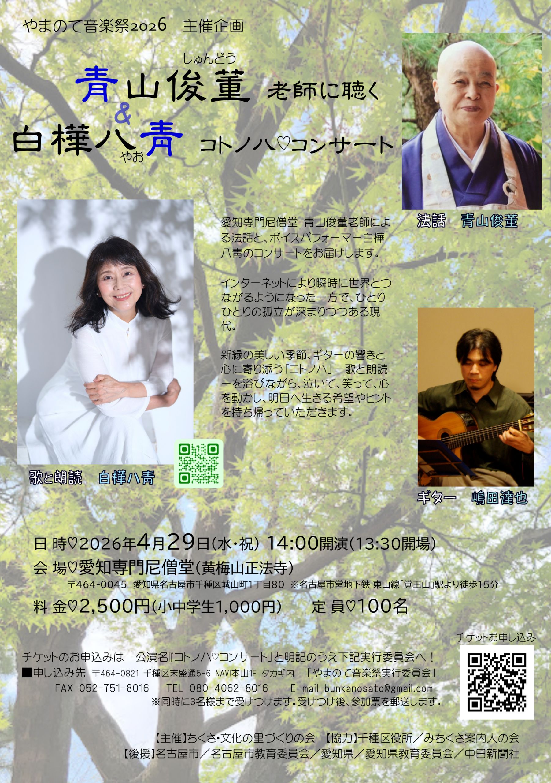 | 場所 | 愛知専門尼僧堂 ご本堂 名古屋市千種区城山町1丁目80 地下鉄「覚王山」駅より徒歩15分 |
